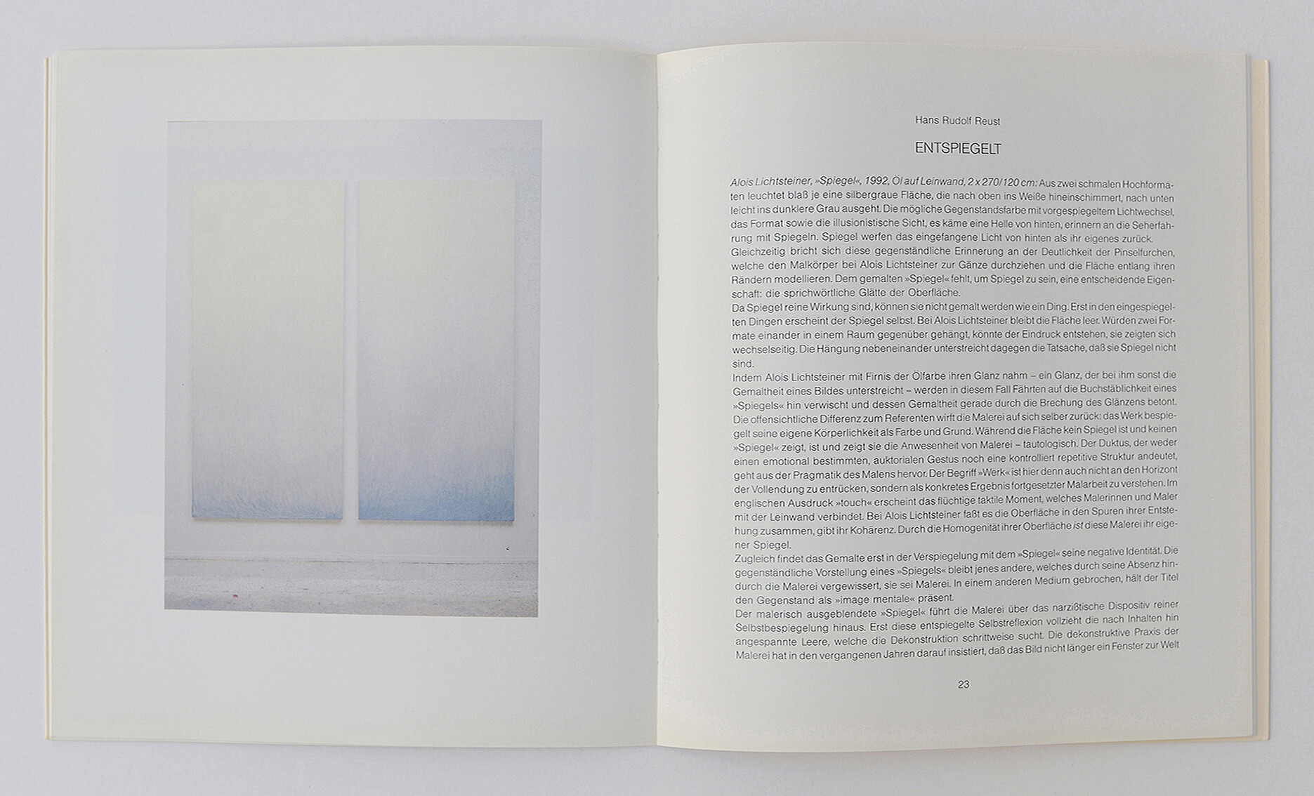 Alois Lichtsteiner. Ausstellungskatalog Kunsthalle Bern. Hrsg. von der Kunsthalle Bern. Stämpfli Verlag. Bern, 1992.