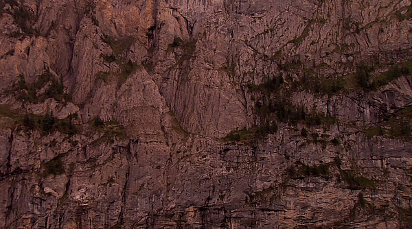 Das Video [...] fängt die atmosphärischen Qualitäten einer Dämmerung ein. Dabei ist die Kamera auf eine Felswand gerichtet und hält die optischen Veränderungen in Echtzeit fest, so lange, bis die Finsternis einbricht und die Nacht alles umhüllt. Ein Verhältnis der Dimensionen ist aufgrund des statischen Ausschnitts nicht auszumachen, Zeit wird lediglich durch optische Veränderungen wahrgenommen. Und doch verselbstständigt sich beim Anblick der immer gleichen Felswand die Wahrnehmung. Der Geist fällt in einen tranceartigen Zustand und glaubt Dinge zu sehen, die sich als blosses Hirngespinst der eigenen Fantasie erweisen. Das Video ist als Loop konzipiert und wird, nachdem das Dunkel der Nacht die Leinwand einnimmt, rückwärts abgespielt. Natalia Huser, 2011.